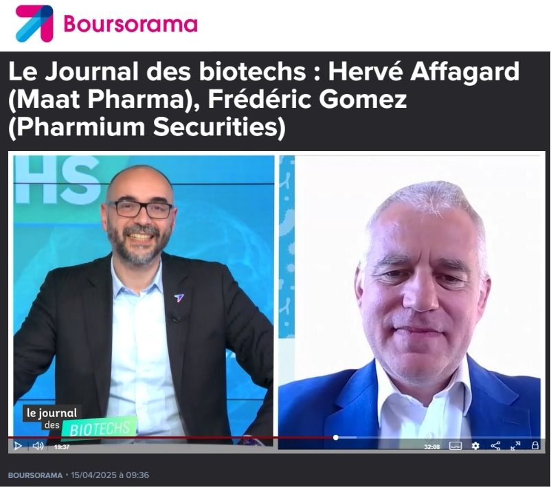April 15, 2025: Le Journal des biotechs : Hervé Affagard (Maat Pharma), Frédéric Gomez (Pharmium Securities) – Boursorama (French Only)