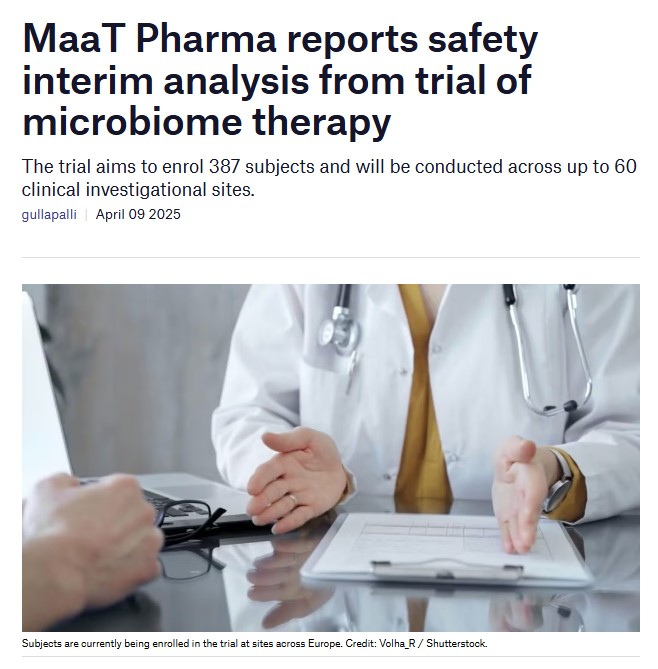 April 9, 2025: MaaT Pharma reports safety interim analysis from trial of microbiome therapy – Clinical Trials Arena