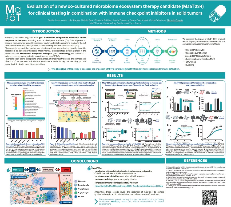 Evaluation of a new co-cultured Microbiome Ecosystem Therapy candidate (MaaT034) for clinical testing in combination with immune checkpoint inhibitors in solid tumors