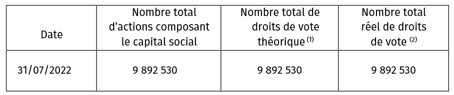 (1) Les droits de vote théoriques sont calculés sur la base de l’ensemble des actions auxquelles sont attachés des droits de vote, y compris les actions privées de droits de vote, conformément à l’article 223-11 du règlement général de l’Autorité des marchés financiers.