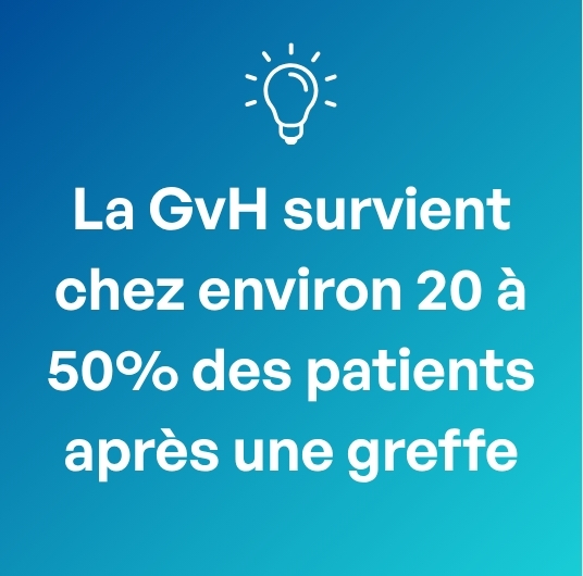 La maladie du greffon contre l’hôte, communément appelé GvH (Graft versus Host Disease, en anglais), est l’une des complications les plus redoutées après une greffe allogénique de cellules souches hématopoïétiques (GCSH) dans le cadre d’un traitement contre un cancer du sang. Dans ce cas, les cellules souches greffées reconnaissent l’organisme du receveur comme étranger et l’attaquent.