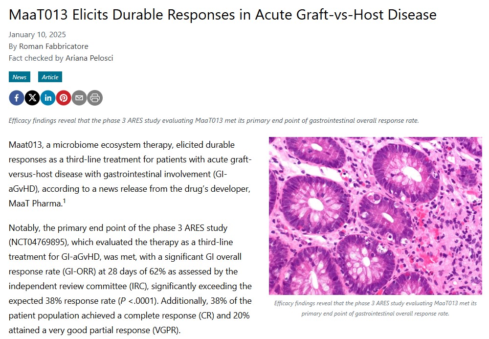 January 13, 2025: ARES Trial of MaaT013 in Acute GVHD Meets Primary End Point - Targeted Oncology
