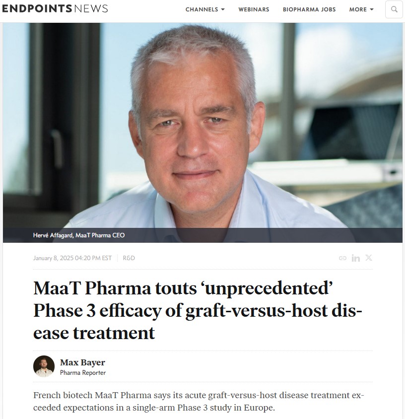 January 8, 2025: MaaT Pharma touts ‘unprecedented’ Phase 3 efficacy of graft-versus-host disease treatment – Endpoints News