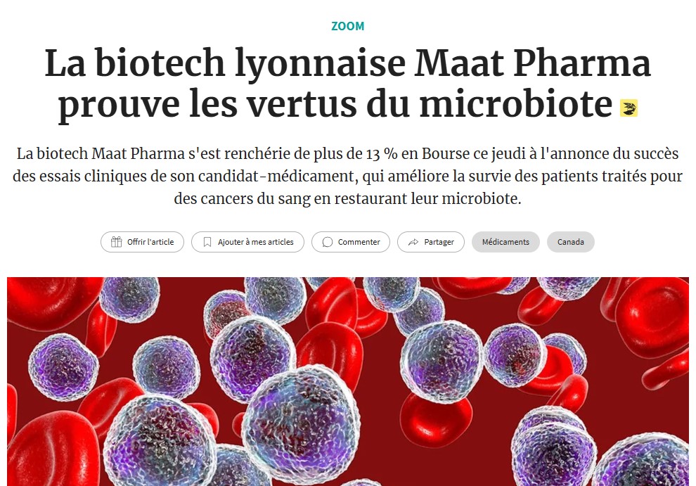January 9, 2025: La biotech lyonnaise MaaT Pharma prouve les vertus du microbiote – Les Echos (French Only)