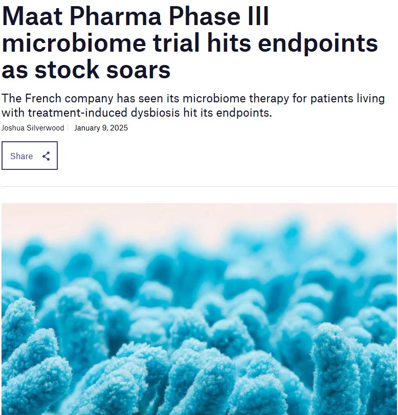 January 9, 2025: Maat Pharma Phase III microbiome trial hits endpoints as stock soars – Clinical Trials Arena