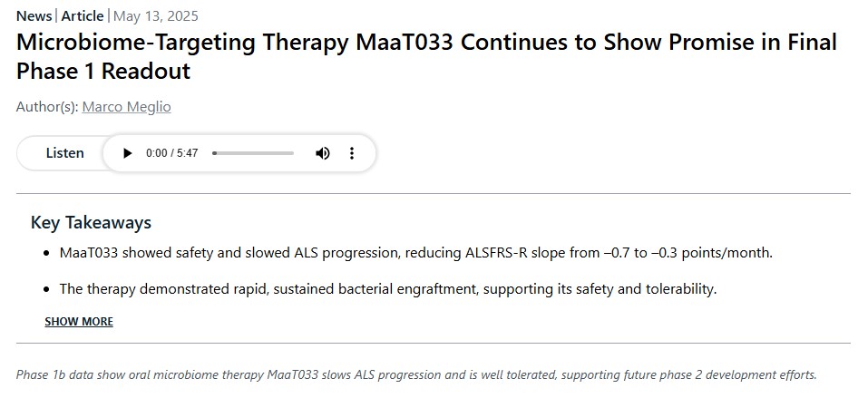 May 13, 2025: Microbiome-Targeting Therapy MaaT033 Continues to Show Promise in Final Phase 1 Readout – Neurology Live