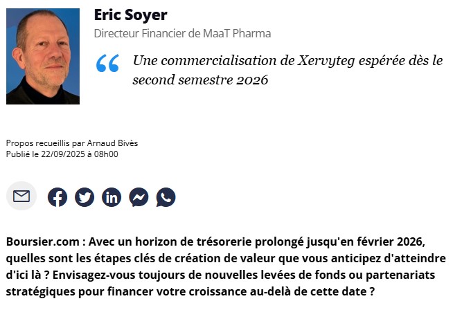 September 22, 2025: Interview of Eric Soyer, CFO at MaaT Pharma – Boursier.com (French Only)
